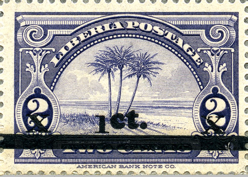 the violet surcharge is generally just to left of normal and seems to slope slightly to the right always; believed only one sheet of 50 was printed |