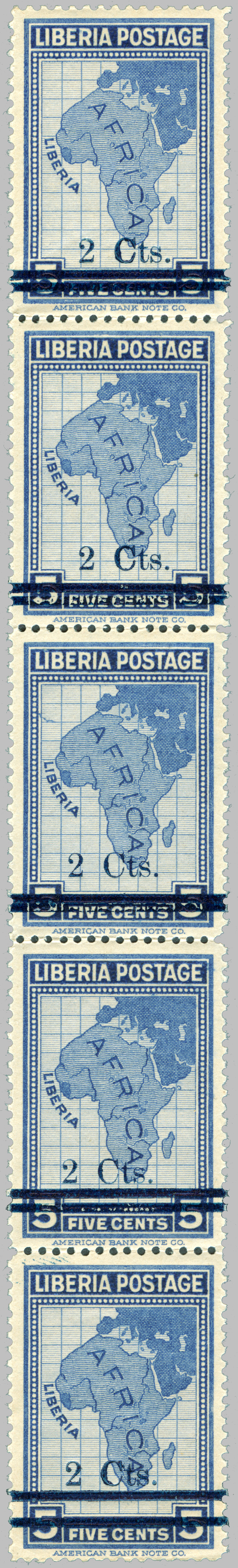 | – | bar obliterating old value “5 FIVE CENTS 5” is continuous across the sheet and appears as two bars very close together on some stamps |