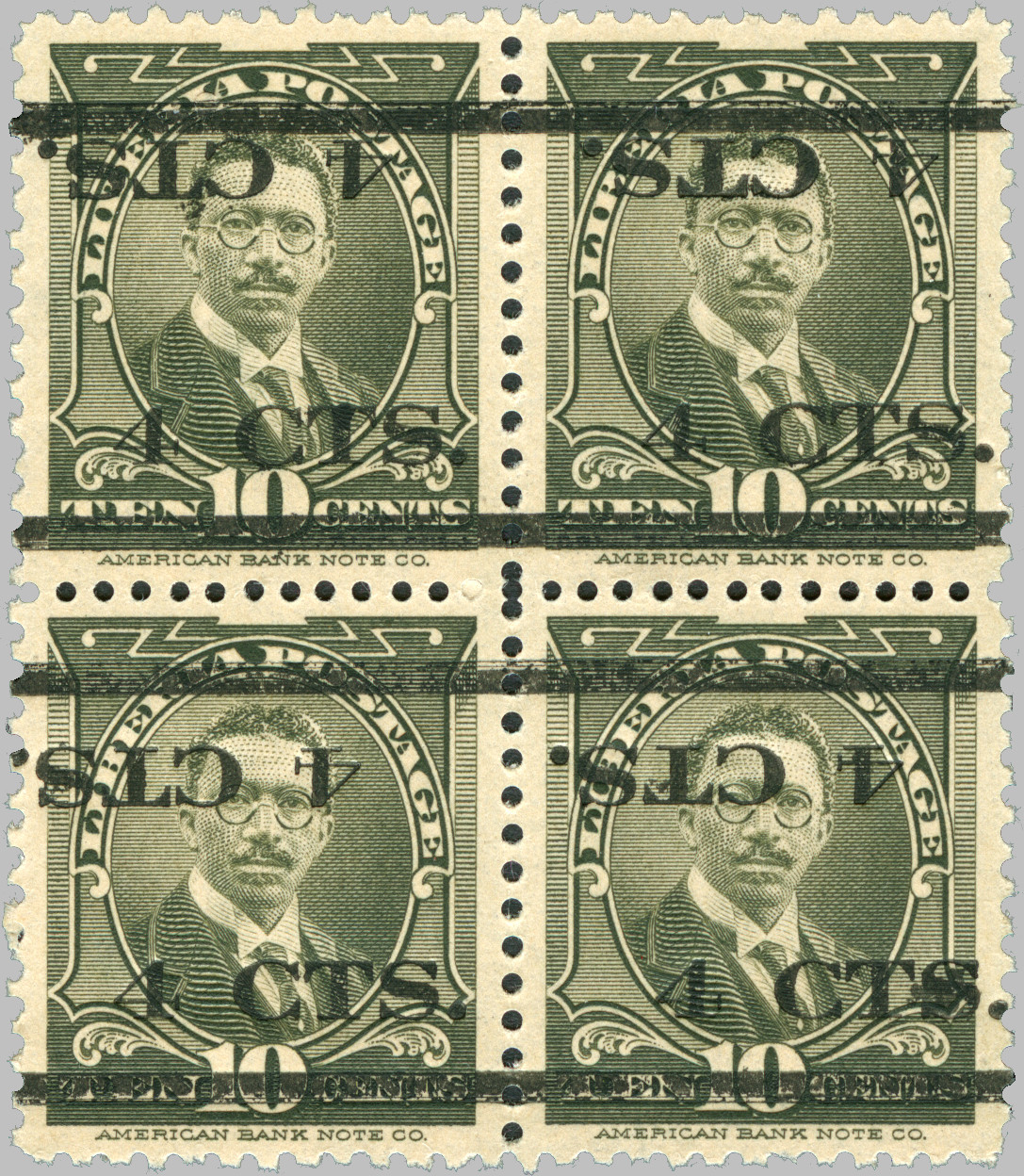 “4 CTS.” on 10c olive gray regular (Scott #292A) and official (Scott O165)
