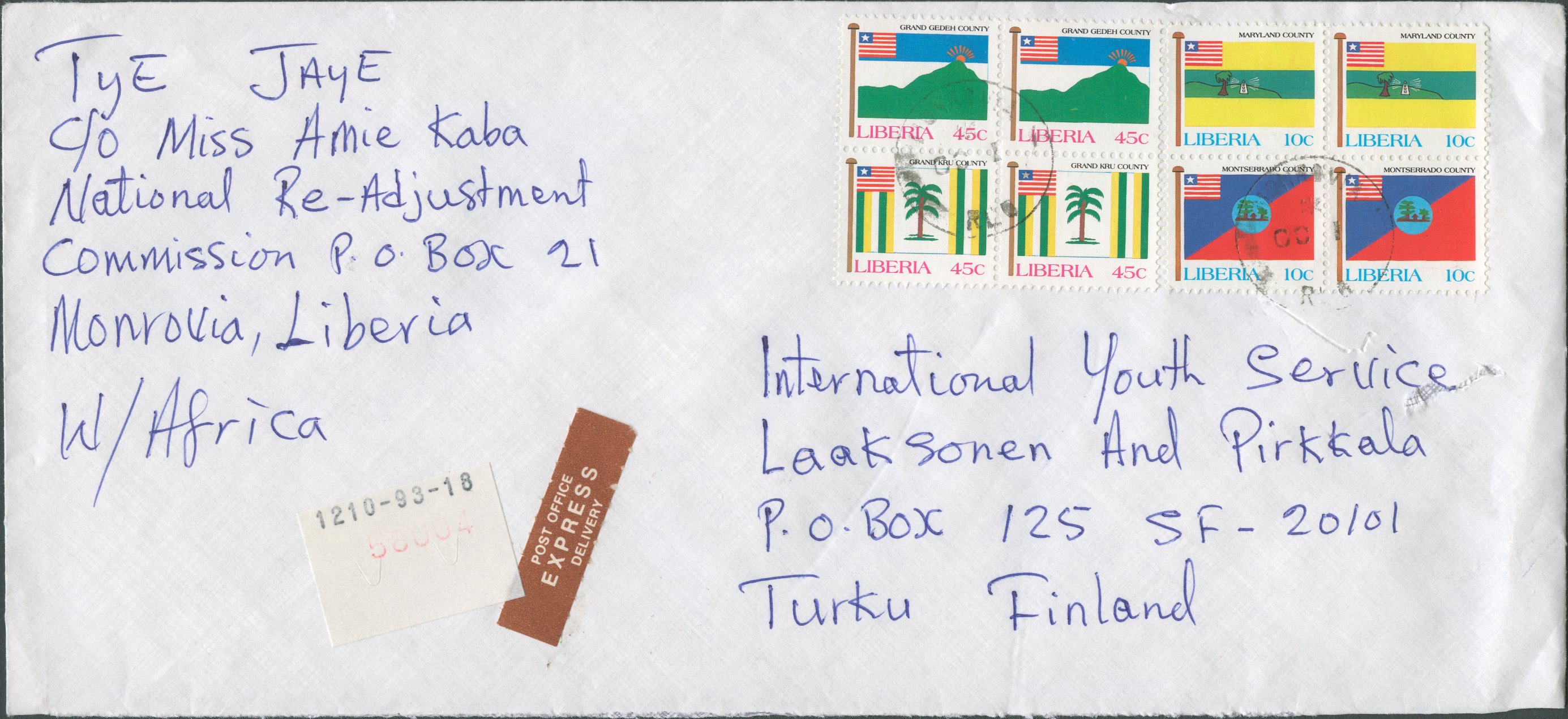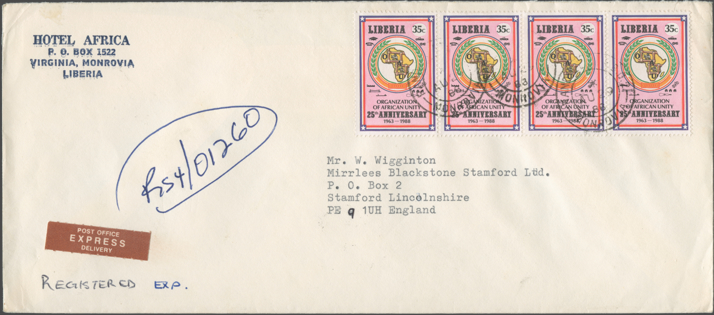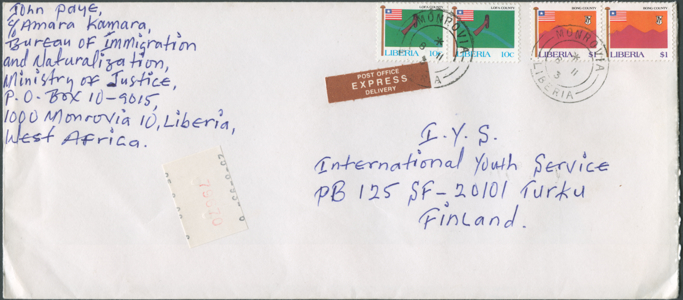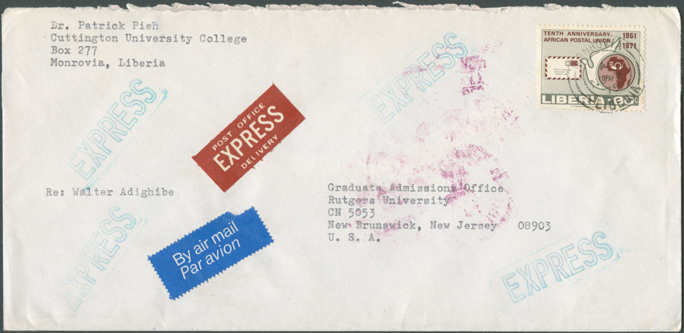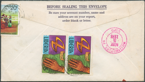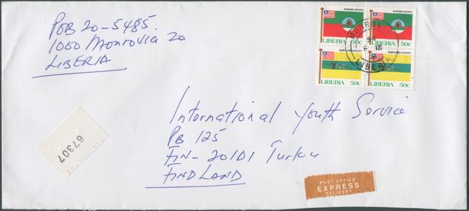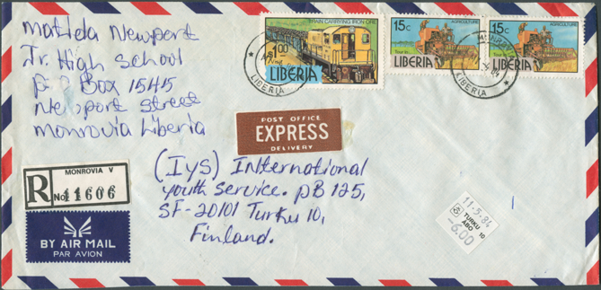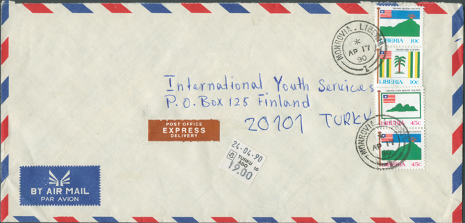 The postal rates in use at a particular time are often difficult to assess because so may letters sent from Liberia are clearly over-franked. Even non-philatelists would use extra stamps on their covers for decoration because of their exotic appearance. Consequently, some items shown in this cover gallery cannot be taken as examples for correct franking.