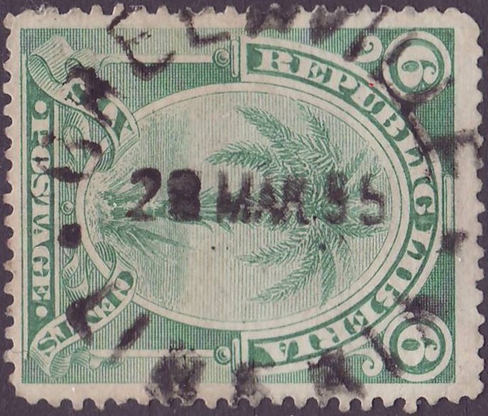 - earliest known use: Oct 12, 1890 (MONROVIA, in violet); Dec 23, 1891 (HARPER); Aug 1, 1890 (GREENVILLE); Jun 15, 1891 (ROBERTSPORT); Nov 1, 1892 (BASSA); Sep 22, 1886 (BREWERVILLE); Feb 4 (CLAY ASHLAND); Apr 26, 1890 (GRAND BASSA); Apr 1, 1890 (MARSHALL); Sep 24, 1886 (MILLSBURG)
