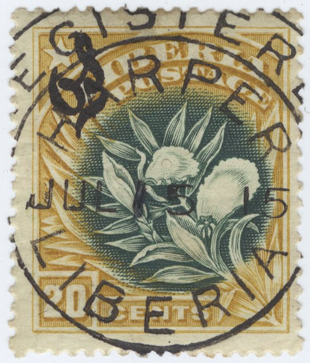 - earliest known use: Apr 12, 1905 (MONROVIA, in violet); Sep 7, 1905 (HARPER, in violet); Apr 23, 1906 (BUCHANAN, in violet)