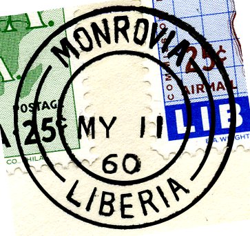 - one of, if not the rarest postmark of Liberia of the 20th century; probably only used on internal mail