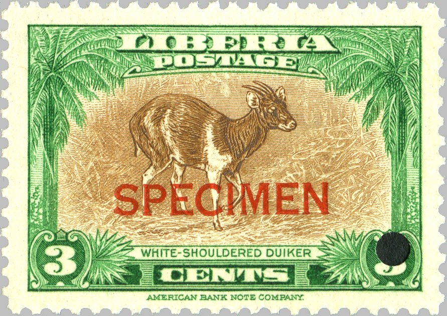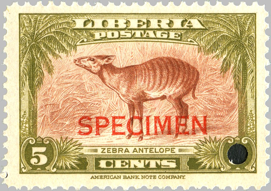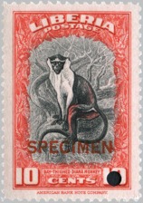 This page contains a loose collection of essays, proofs and specimens of Liberian stamps issued through 1960. About the terminology: essays either show stamp designs that were never used or designs that were used but altered for the final stamp; proofs, whether taken from the whole plate or directly from the single die, always show the final design or parts of it – but often in a different “trial” color and printed on different paper, e.g. cardboard – however, they can also have gum and be perforated like a normal stamp; specimens are the finished stamps as issued, but with overprint to indicate they are meant for distribution to postal authorities or sent as examples to the Universal Postal Union. From this it should be clear that the “Waterlow specimens” of the first pictorial issue printed in trial colors are really proofs.