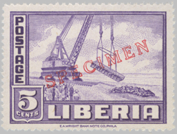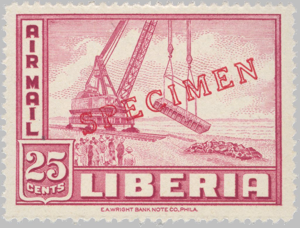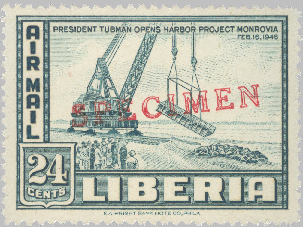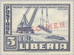 This page contains a loose collection of essays, proofs and specimens of Liberian stamps issued through 1960. About the terminology: essays either show stamp designs that were never used or designs that were used but altered for the final stamp; proofs, whether taken from the whole plate or directly from the single die, always show the final design or parts of it – but often in a different “trial” color and printed on different paper, e.g. cardboard – however, they can also have gum and be perforated like a normal stamp; specimens are the finished stamps as issued, but with overprint to indicate they are meant for distribution to postal authorities or sent as examples to the Universal Postal Union. From this it should be clear that the “Waterlow specimens” of the first pictorial issue printed in trial colors are really proofs.
