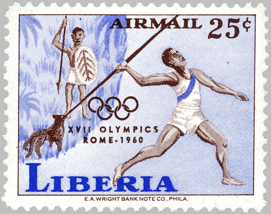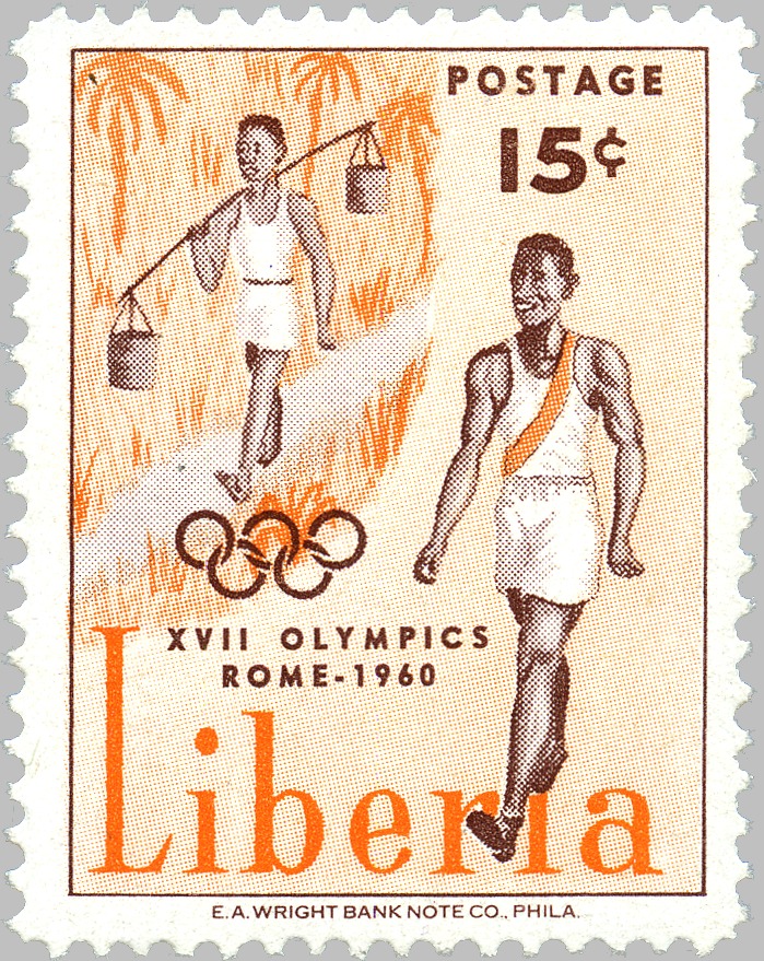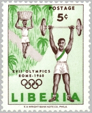 Below each stamp are given its Scott catalog number to the left, date of issue to the right, and information about the catalog value in the middle (mint - used). Values are mainly based on Scott and Michel 2012 catalogs, and are coded by falling into one of ten price ranges, indicated by the number of diamonds: ” = below 30c, ♦♦” = 30c..99c, ♦♦♦” = $1..$2.99, ♦♦♦♦” = $3..$9.99, ♦♦♦♦♦” = $10..$29, ♦♦♦♦♦♦” = $30..$99, ♦♦♦♦♦♦♦” = $100..$299, ♦♦♦♦♦♦♦♦” = $300..$999, ♦♦♦♦♦♦♦♦♦” = $1000..$2999, ♦♦♦♦♦♦♦♦♦♦” = $3000 and above. Catalog prices for many Liberian stamps are dubious, but at least this should give you a hint if some stamp is waste paper or your ticket to Rio!