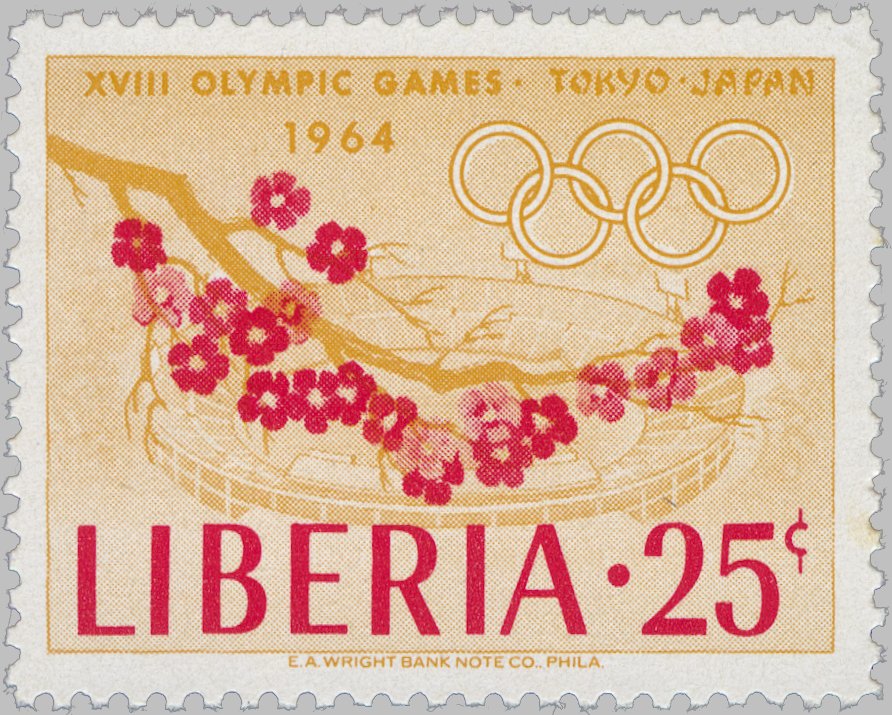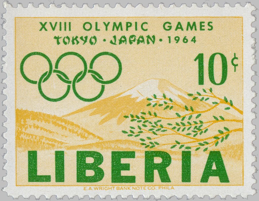 Below each stamp are given its Scott catalog number to the left, date of issue to the right, and information about the catalog value in the middle (mint - used). Values are mainly based on Scott and Michel 2012 catalogs, and are coded by falling into one of ten price ranges, indicated by the number of diamonds: ” = below 30c, ♦♦” = 30c..99c, ♦♦♦” = $1..$2.99, ♦♦♦♦” = $3..$9.99, ♦♦♦♦♦” = $10..$29, ♦♦♦♦♦♦” = $30..$99, ♦♦♦♦♦♦♦” = $100..$299, ♦♦♦♦♦♦♦♦” = $300..$999, ♦♦♦♦♦♦♦♦♦” = $1000..$2999, ♦♦♦♦♦♦♦♦♦♦” = $3000 and above. Catalog prices for many Liberian stamps are dubious, but at least this should give you a hint if some stamp is waste paper or your ticket to Rio!
