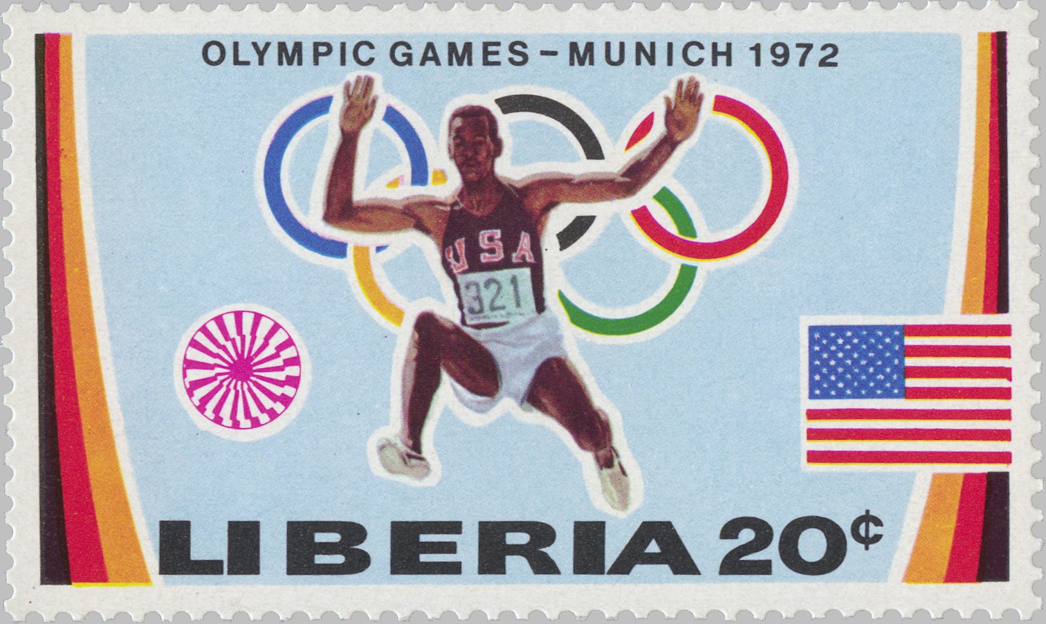 Below each stamp are given its Scott catalog number to the left, date of issue to the right, and information about the catalog value in the middle (mint - used). Values are mainly based on Scott and Michel 2012 catalogs, and are coded by falling into one of ten price ranges, indicated by the number of diamonds: ” = below 30c, ♦♦” = 30c..99c, ♦♦♦” = $1..$2.99, ♦♦♦♦” = $3..$9.99, ♦♦♦♦♦” = $10..$29, ♦♦♦♦♦♦” = $30..$99, ♦♦♦♦♦♦♦” = $100..$299, ♦♦♦♦♦♦♦♦” = $300..$999, ♦♦♦♦♦♦♦♦♦” = $1000..$2999, ♦♦♦♦♦♦♦♦♦♦” = $3000 and above. Catalog prices for many Liberian stamps are dubious, but at least this should give you a hint if some stamp is waste paper or your ticket to Rio!