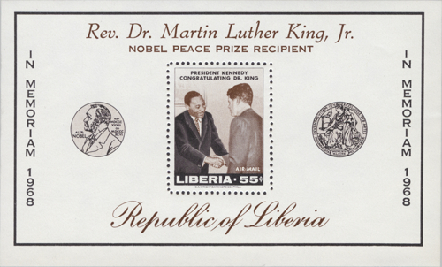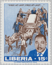 Below each stamp are given its Scott catalog number to the left, date of issue to the right, and information about the catalog value in the middle (mint - used). Values are mainly based on Scott and Michel 2012 catalogs, and are coded by falling into one of ten price ranges, indicated by the number of diamonds: ” = below 30c, ♦♦” = 30c..99c, ♦♦♦” = $1..$2.99, ♦♦♦♦” = $3..$9.99, ♦♦♦♦♦” = $10..$29, ♦♦♦♦♦♦” = $30..$99, ♦♦♦♦♦♦♦” = $100..$299, ♦♦♦♦♦♦♦♦” = $300..$999, ♦♦♦♦♦♦♦♦♦” = $1000..$2999, ♦♦♦♦♦♦♦♦♦♦” = $3000 and above. Catalog prices for many Liberian stamps are dubious, but at least this should give you a hint if some stamp is waste paper or your ticket to Rio!