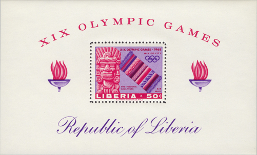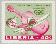 Below each stamp are given its Scott catalog number to the left, date of issue to the right, and information about the catalog value in the middle (mint - used). Values are mainly based on Scott and Michel 2012 catalogs, and are coded by falling into one of ten price ranges, indicated by the number of diamonds: ” = below 30c, ♦♦” = 30c..99c, ♦♦♦” = $1..$2.99, ♦♦♦♦” = $3..$9.99, ♦♦♦♦♦” = $10..$29, ♦♦♦♦♦♦” = $30..$99, ♦♦♦♦♦♦♦” = $100..$299, ♦♦♦♦♦♦♦♦” = $300..$999, ♦♦♦♦♦♦♦♦♦” = $1000..$2999, ♦♦♦♦♦♦♦♦♦♦” = $3000 and above. Catalog prices for many Liberian stamps are dubious, but at least this should give you a hint if some stamp is waste paper or your ticket to Rio!