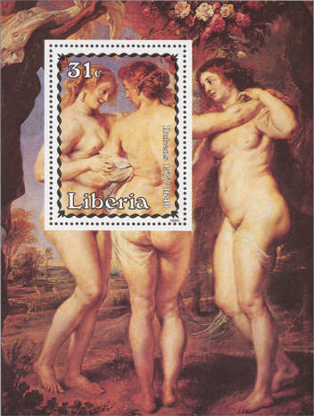 Below each stamp are given its Scott catalog number to the left, date of issue to the right, and information about the catalog value in the middle (mint - used). Values are mainly based on Scott and Michel 2012 catalogs, and are coded by falling into one of ten price ranges, indicated by the number of diamonds: ” = below 30c, ♦♦” = 30c..99c, ♦♦♦” = $1..$2.99, ♦♦♦♦” = $3..$9.99, ♦♦♦♦♦” = $10..$29, ♦♦♦♦♦♦” = $30..$99, ♦♦♦♦♦♦♦” = $100..$299, ♦♦♦♦♦♦♦♦” = $300..$999, ♦♦♦♦♦♦♦♦♦” = $1000..$2999, ♦♦♦♦♦♦♦♦♦♦” = $3000 and above. Catalog prices for many Liberian stamps are dubious, but at least this should give you a hint if some stamp is waste paper or your ticket to Rio!