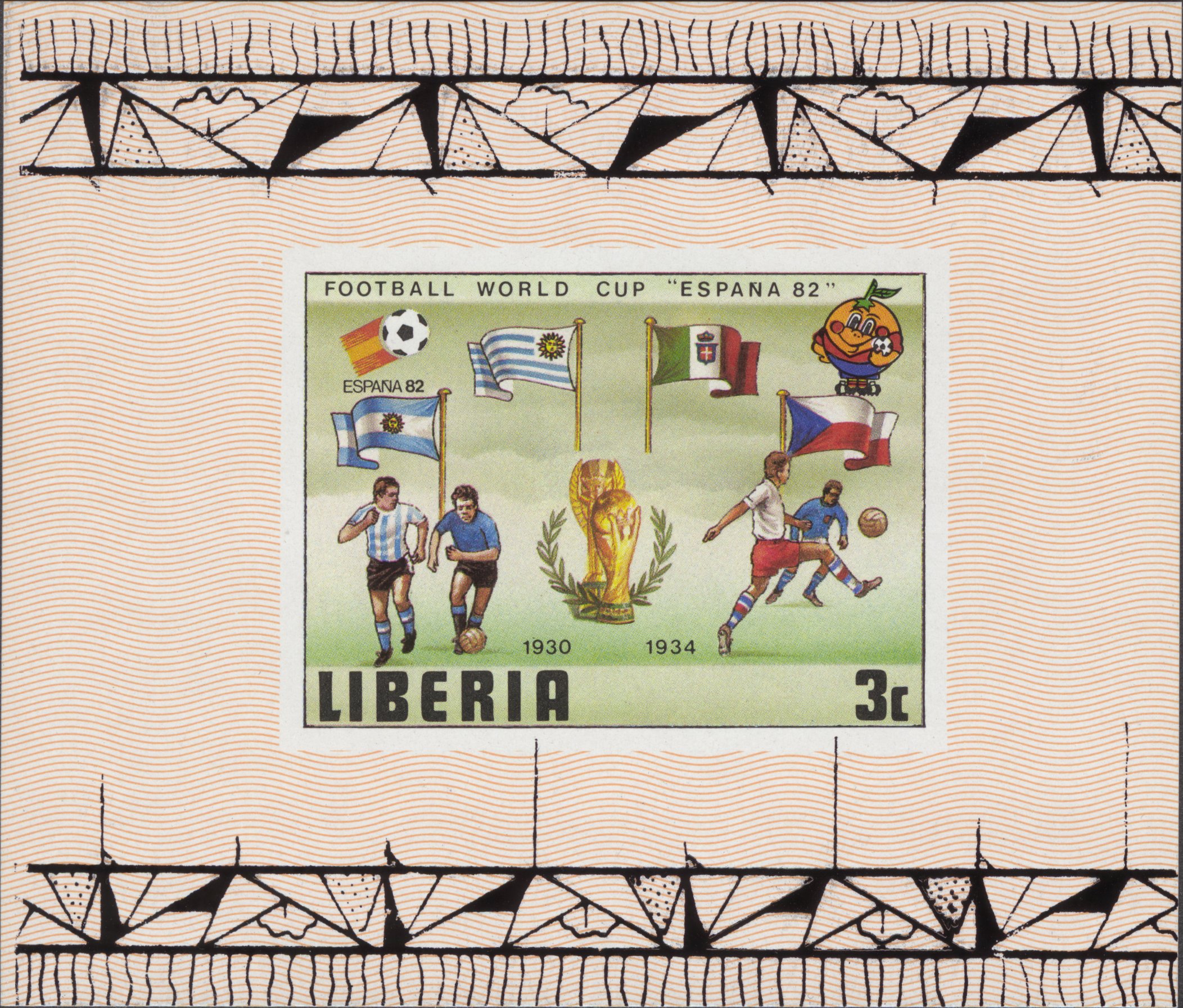 In general, Liberia's classic postage stamps were printed on paper without dedicated watermark – some are known with paper-makers watermark – but there are two exceptions: most of the early Waterlow & Sons issues are watermarked “Rosette” (not the triangle stamps), and all issues printed in Germany are watermarked “Crosses and Circles”.