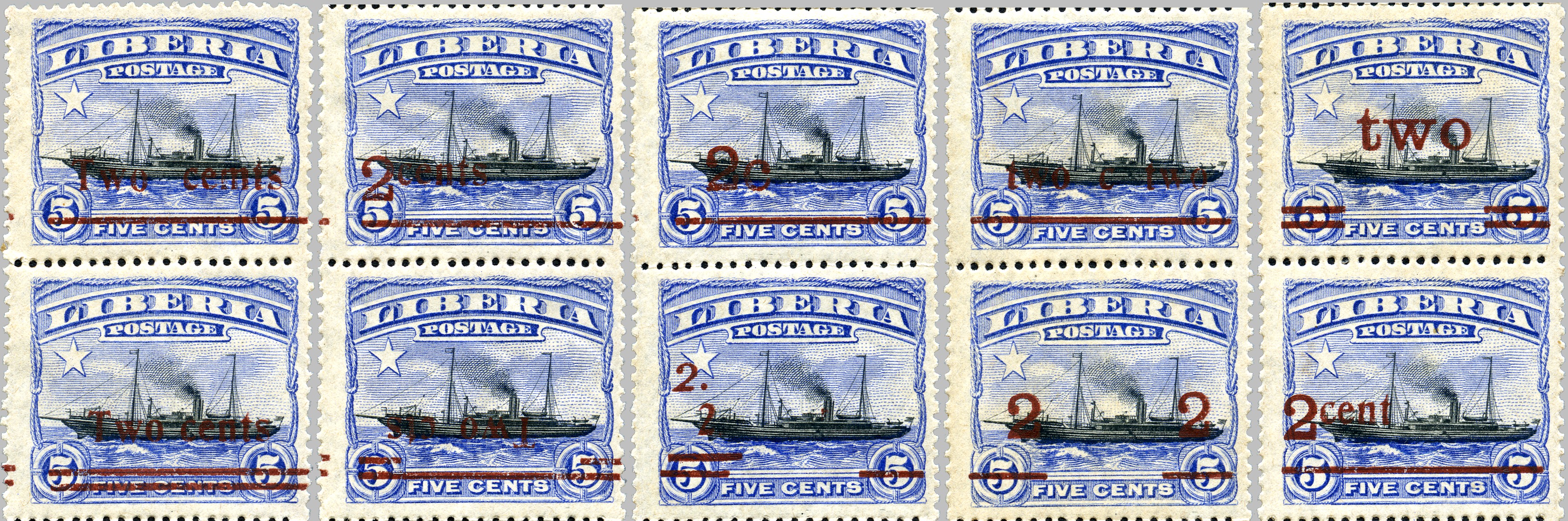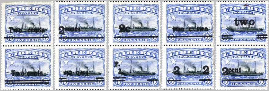 These overprints were applied locally in Monrovia when about 800 of the troops were sent to the field in 1916 to defeat a Krus revolt.