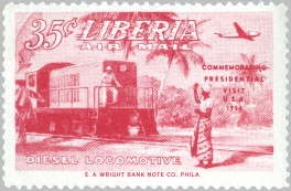 Below each stamp are given its Scott catalog number to the left, date of issue to the right, and information about the catalog value in the middle (mint - used). Values are mainly based on Scott and Michel 2012 catalogs, and are coded by falling into one of ten price ranges, indicated by the number of diamonds: “♦” = below 30c, “♦♦” = 30c..99c, “♦♦♦” = $1..$2.99, “♦♦♦♦” = $3..$9.99, “♦♦♦♦♦” = $10..$29, “♦♦♦♦♦♦” = $30..$99, “♦♦♦♦♦♦♦” = $100..$299, “♦♦♦♦♦♦♦♦” = $300..$999, “♦♦♦♦♦♦♦♦♦” = $1000..$2999, “♦♦♦♦♦♦♦♦♦♦” = $3000 and above. Catalog prices for many Liberian stamps are dubious, but at least this should give you a hint if some stamp is waste paper or your ticket to Rio!