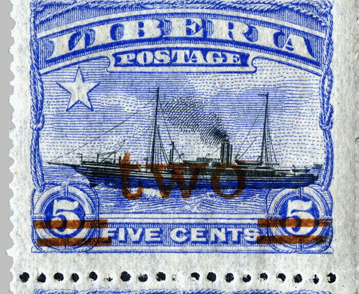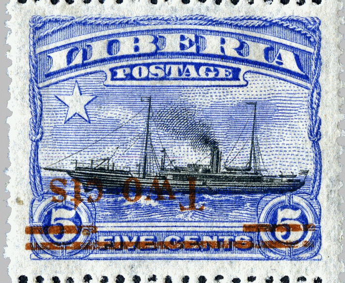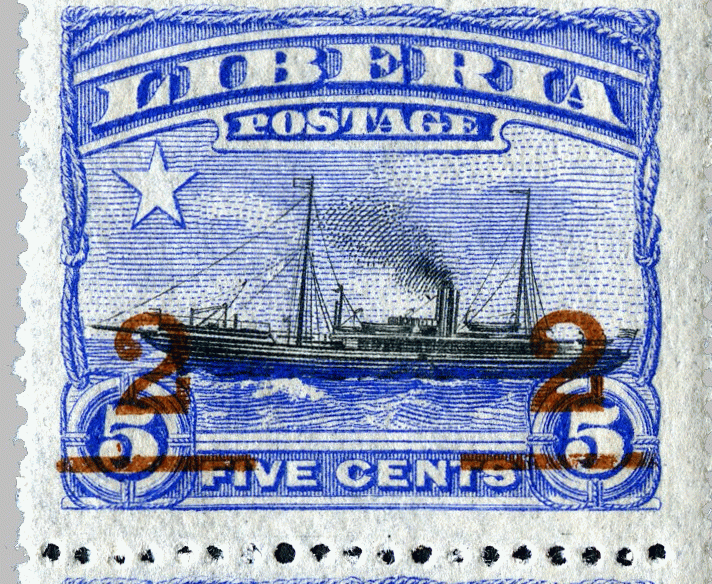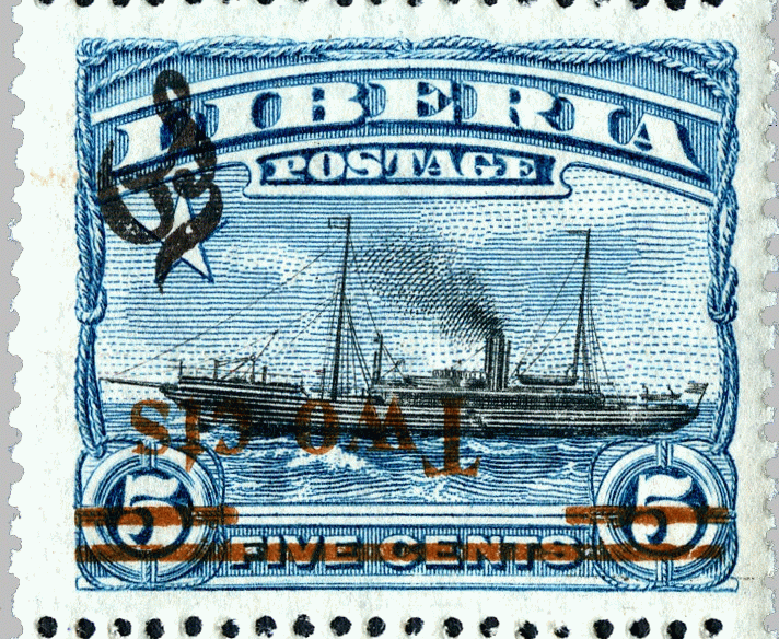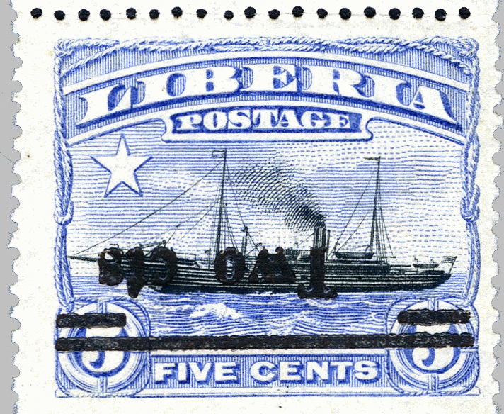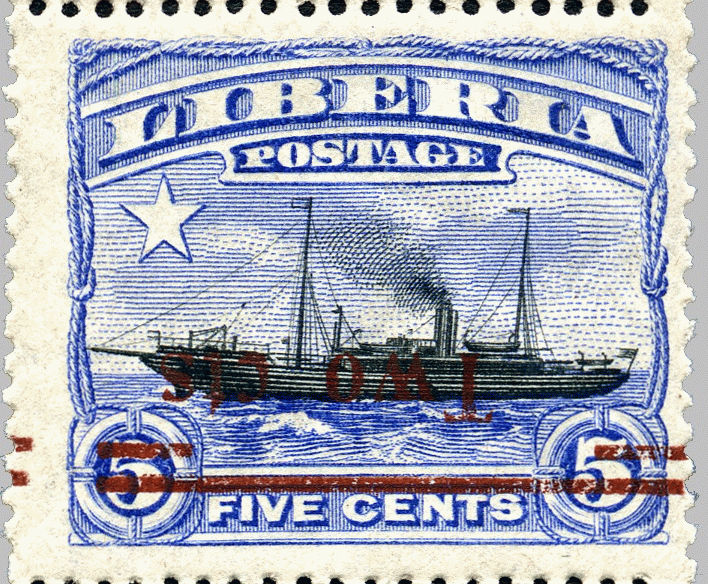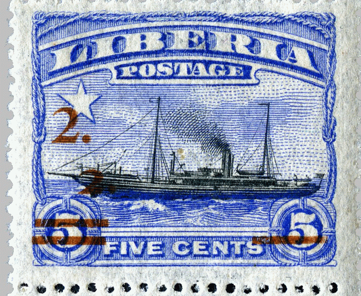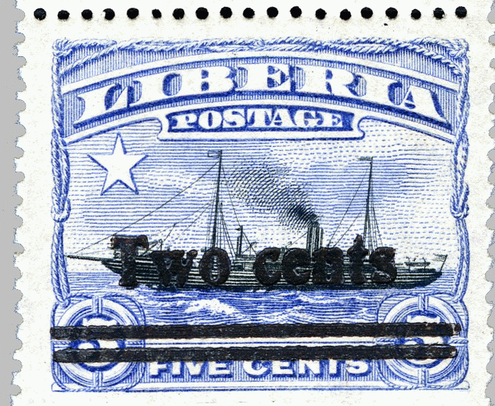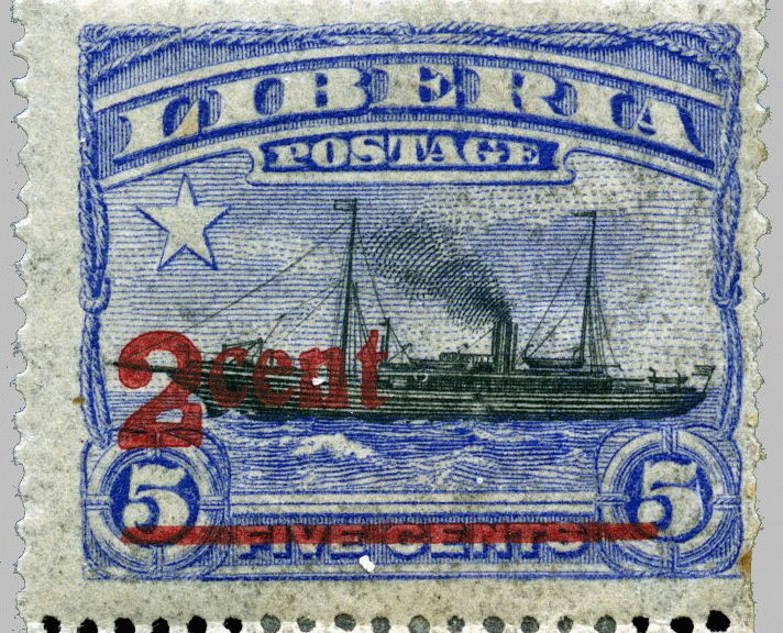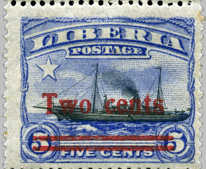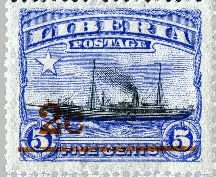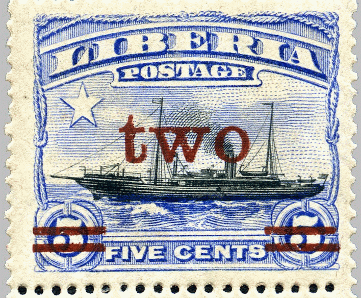 Errors often creep in when stamps are surcharged, but the mistakes usually make the stamps rarer. In this case, taking for example the 5 cents ultramarine and black, show a picture of the Liberian gunboat "Lark," each sheet of 100 stamps contains "errors." Each stamp in the top row of ten bears the red surcharge "Two Cents" with a long red line under it. On each stamp in the second row there are two lines instead of one. The fourth row bears "Two Cts" upside down on each stamp. The eighth row shows 2 2, each figure having a short line under it. The surcharges on the other five rows are all different.